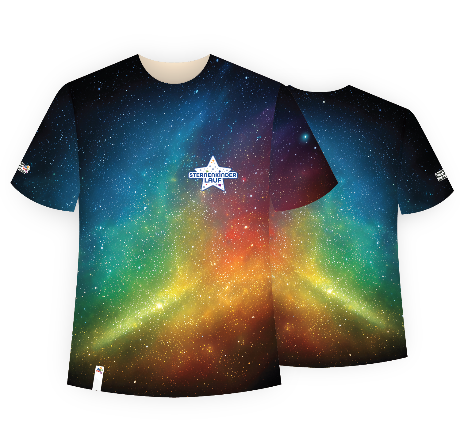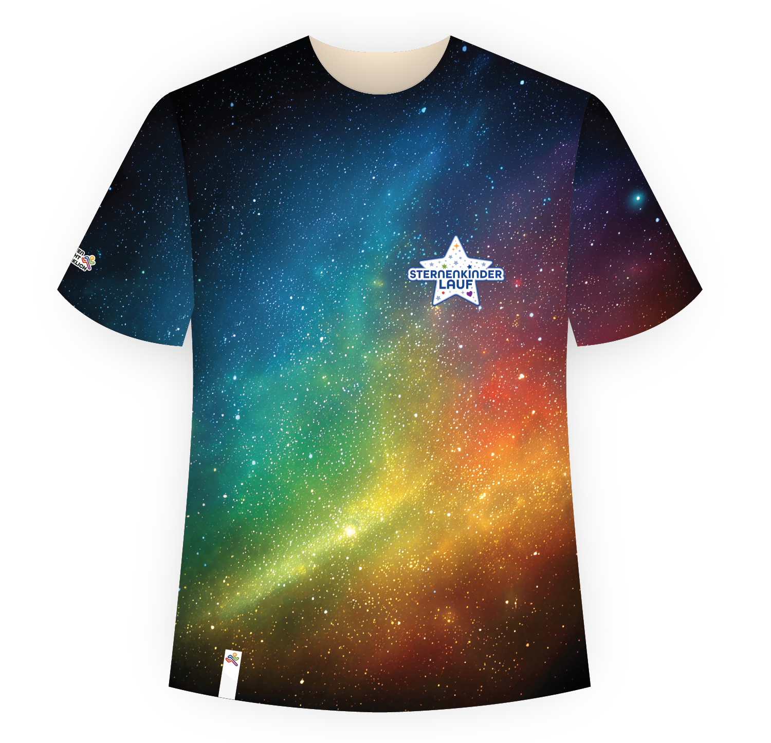 Das Design zeigt ein funkelndes Sternenmeer in sanften Regenbogenfarben – als Zeichen für Erinnerung, Hoffnung und stille Verbundenheit. Mit dem Sternenkinderlauf-Logo auf der Brust trägst du deine Botschaft sichtbar nach außen: Du läufst für all jene, die nicht mehr laufen können – aber nie vergessen sind.