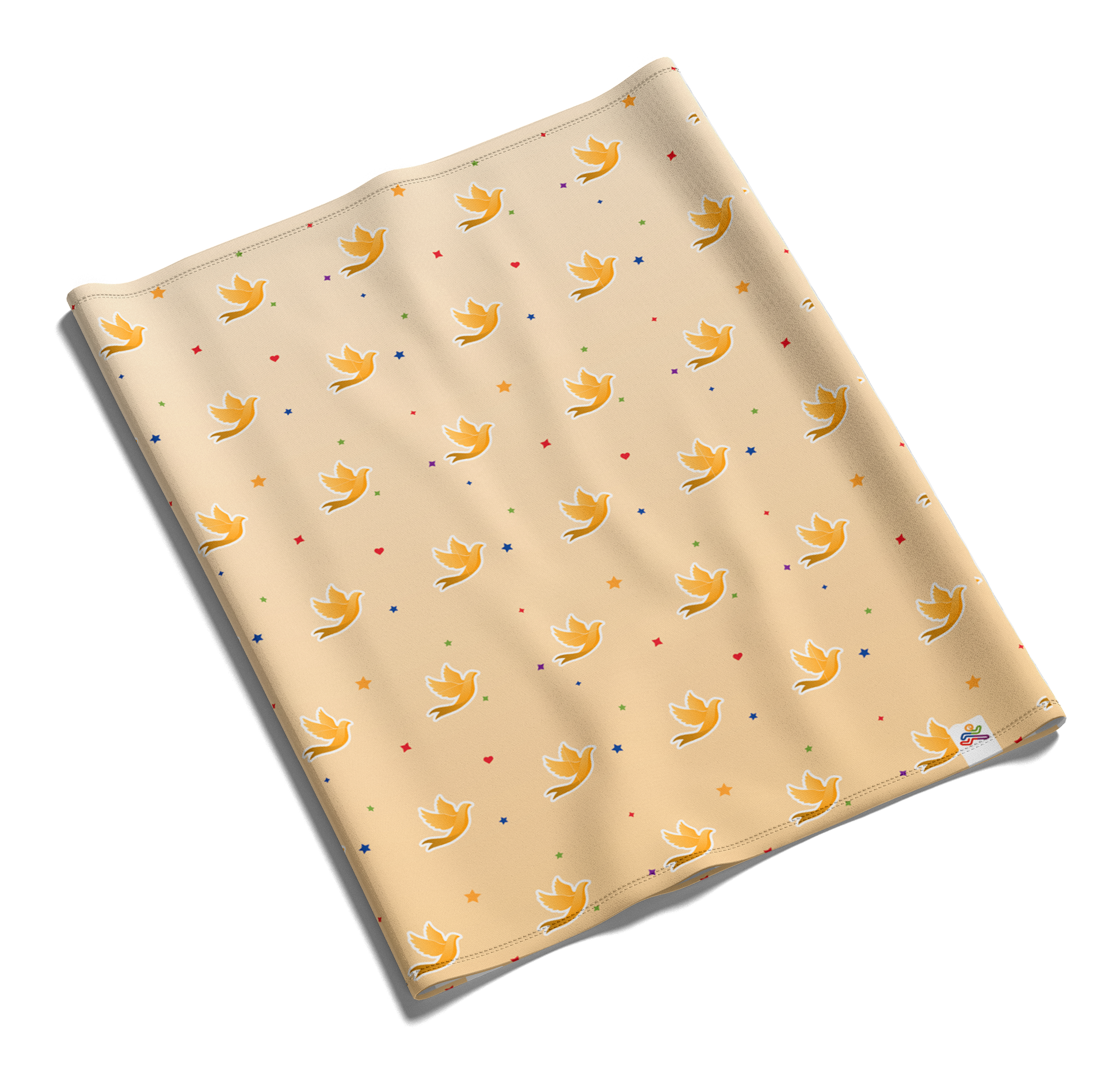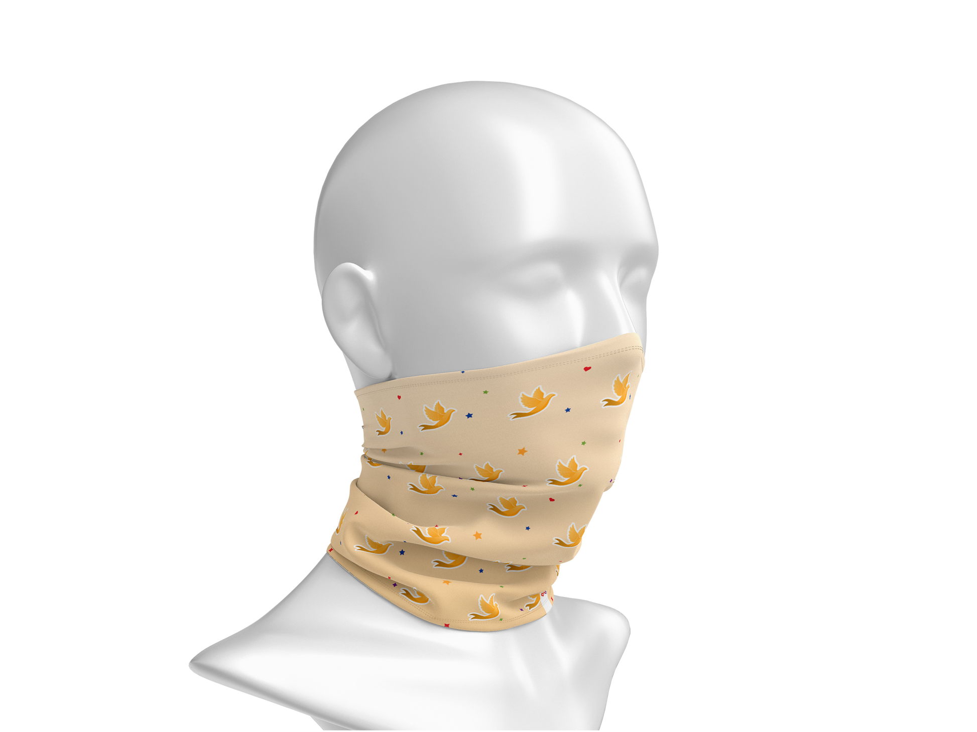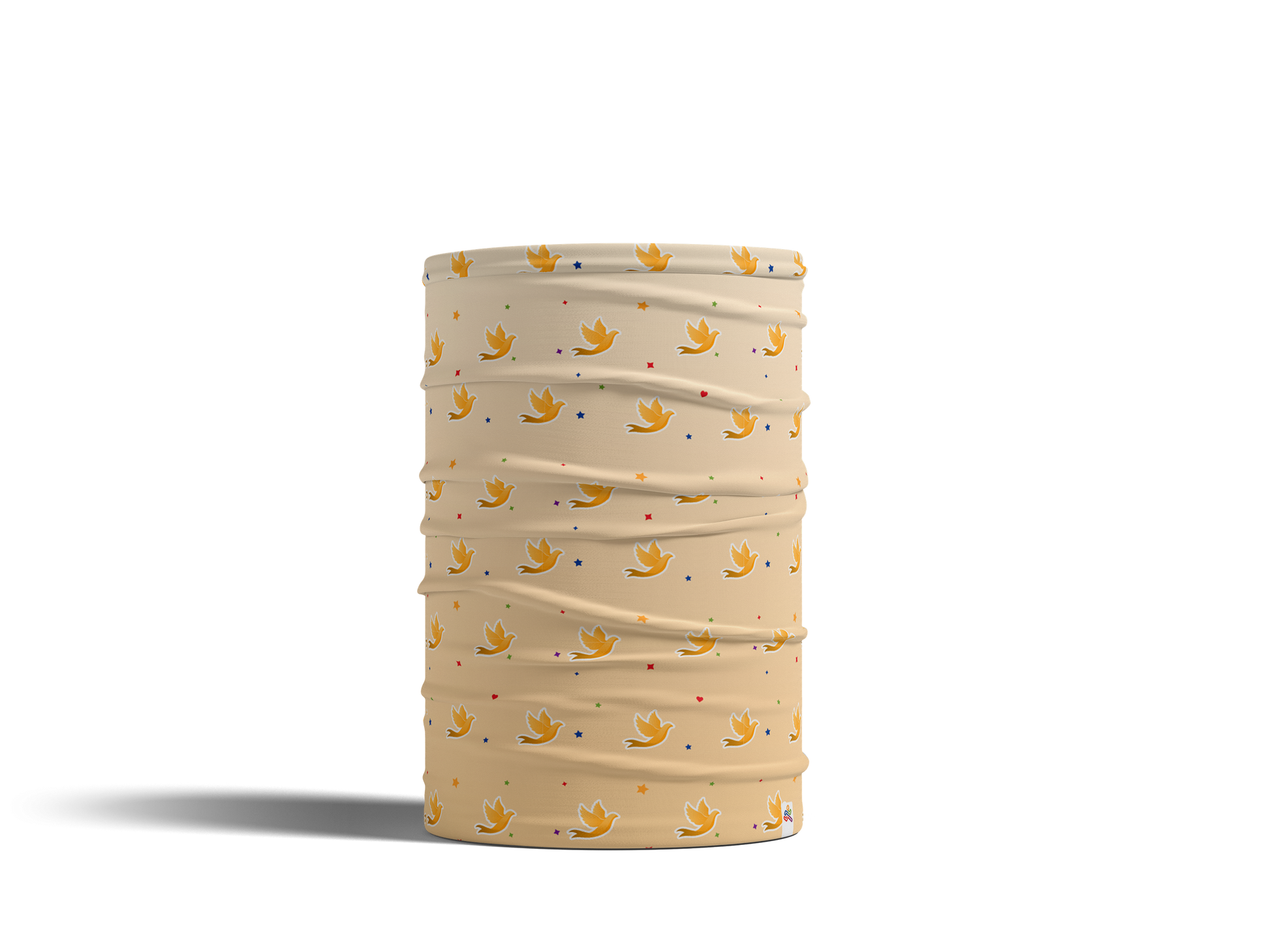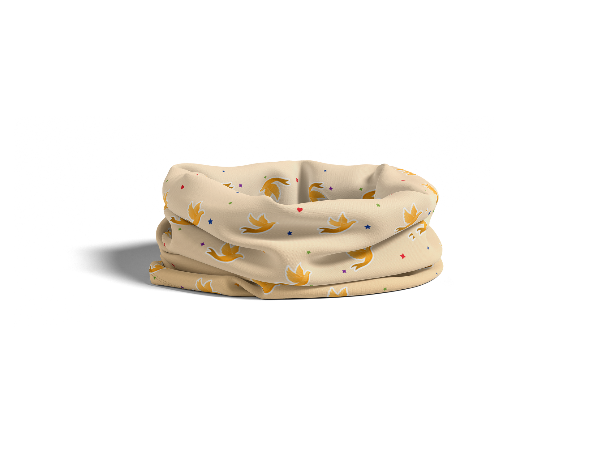 Zarte, goldene Tauben und kleine bunte Sterne auf warmem Beige – dieses Design strahlt Ruhe, Hoffnung und Leichtigkeit aus. Unser Multifunktionstuch begleitet dich stilvoll durch den Alltag und auf all deinen Wegen: Ob als Halswärmer, Stirnband, Mütze oder Atemschutz – es passt sich flexibel deinen Bedürfnissen an. Ein dezentes, aber ausdrucksstarkes Accessoire für alle, die mit Herz unterwegs sind.
