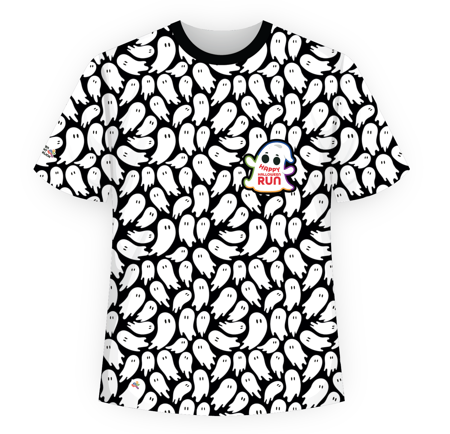 Dieses Shirt ist der perfekte Mix aus Halloween-Spaß und sportlichem Spirit! Der All-Over-Geisterprint sorgt garantiert für Aufsehen – ob beim Laufen, beim Feiern oder im Alltag. Mit dem bunten Logo des Happy Halloween Runs auf der Brust zeigst du: Du bist Teil eines Laufs, der nicht nur Freude macht, sondern auch Gutes bewirkt.
