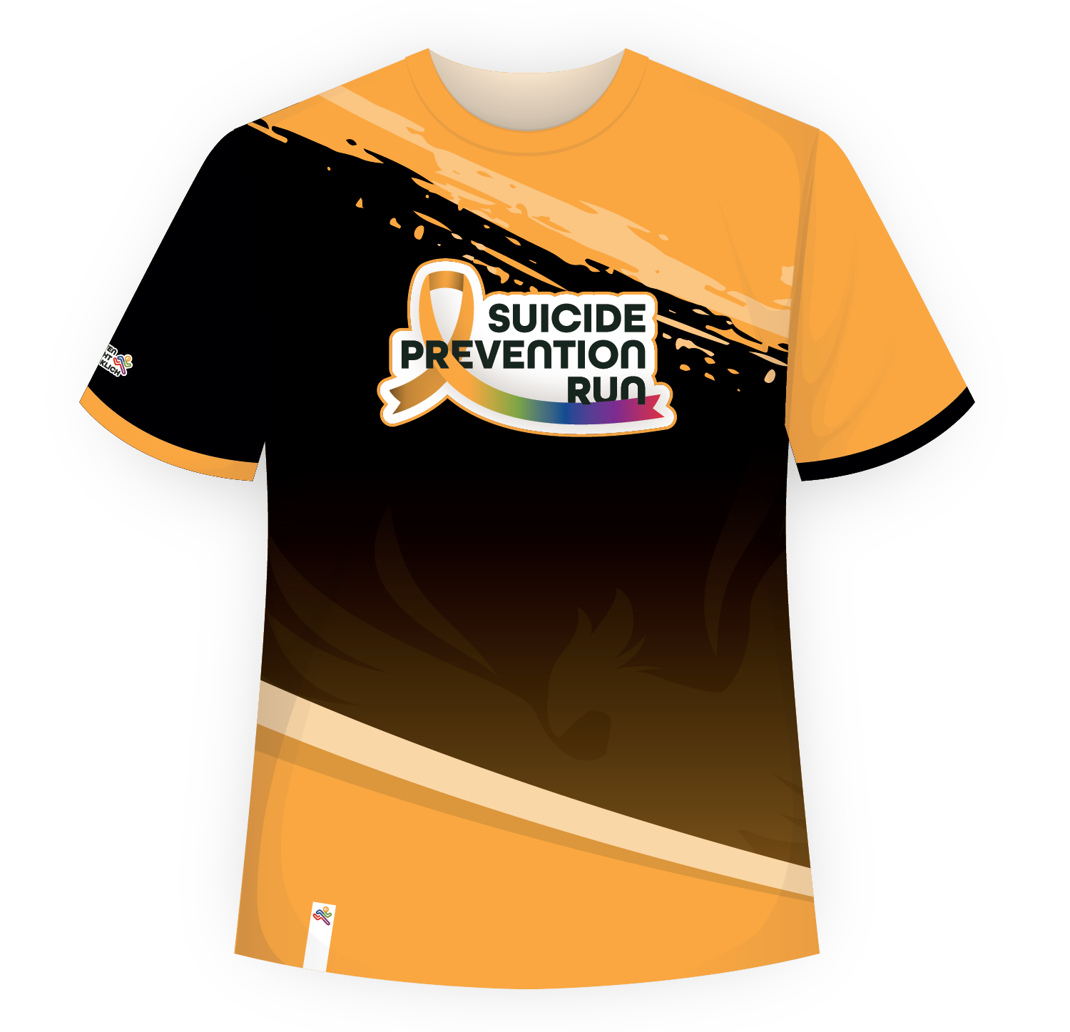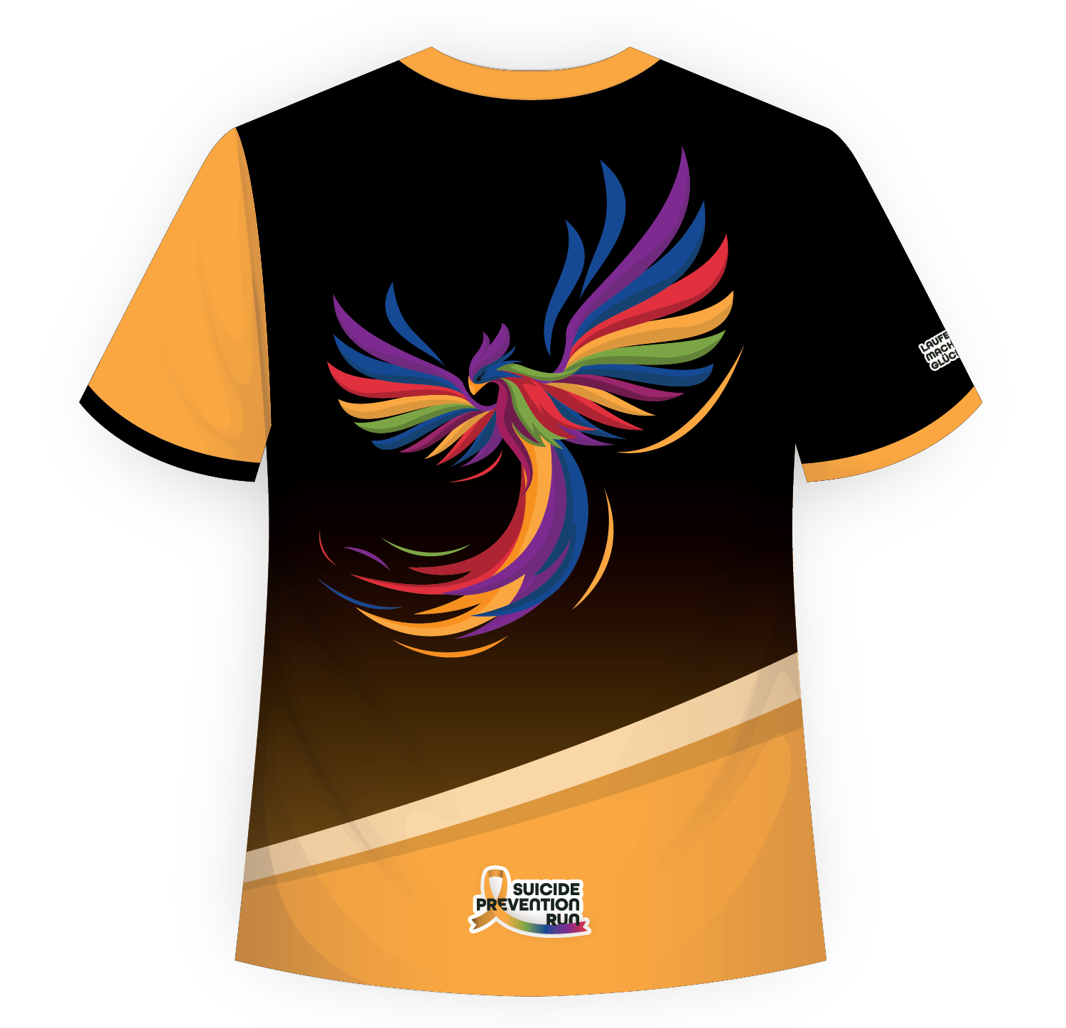 Der kräftige Farbverlauf in Orange und Schwarz steht für Wandel, Energie und Kraft – passend zu unserer gemeinsamen Mission, das Thema Suizidprävention sichtbar zu machen und Betroffenen Mut zu schenken.